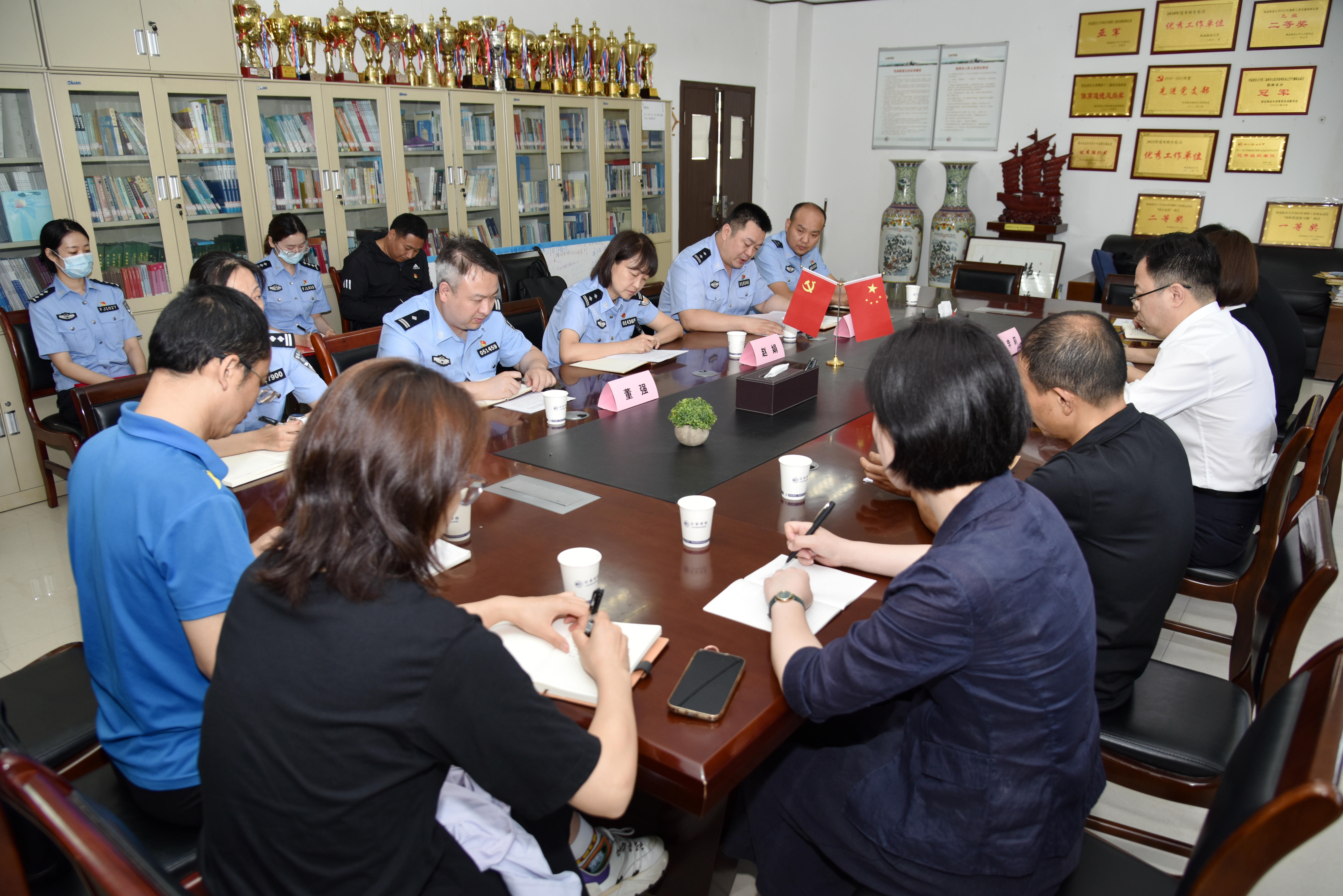 6月14日上午,88直播 侦查学党支部与西安市公安局长安分局政工科党支部开展党建联建活动,双方签署党建联建协议并开展主题党日活动。长安分局党委委员、副局长赵娟,88直播 党委委员、副院长闫小军,88直播 副院长李莉出席了本次活动。双方党支部书记与党员代表10余人参加了活动,活动由长安分局政工科党支部书记、88直播 2006届校友梁明同志主持。