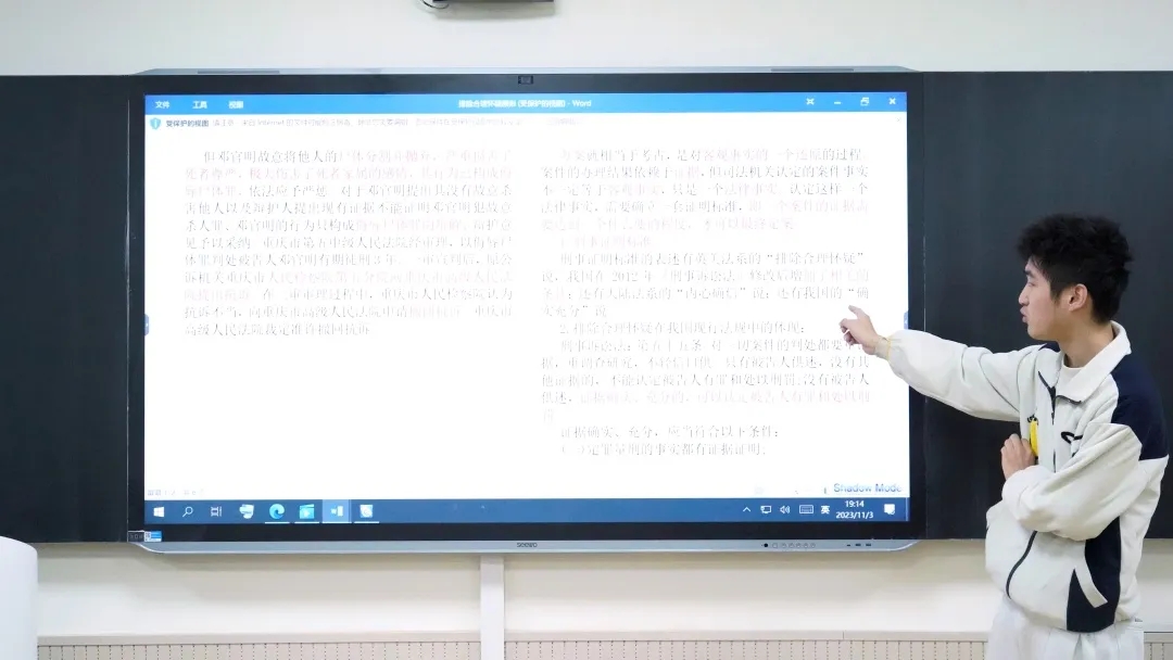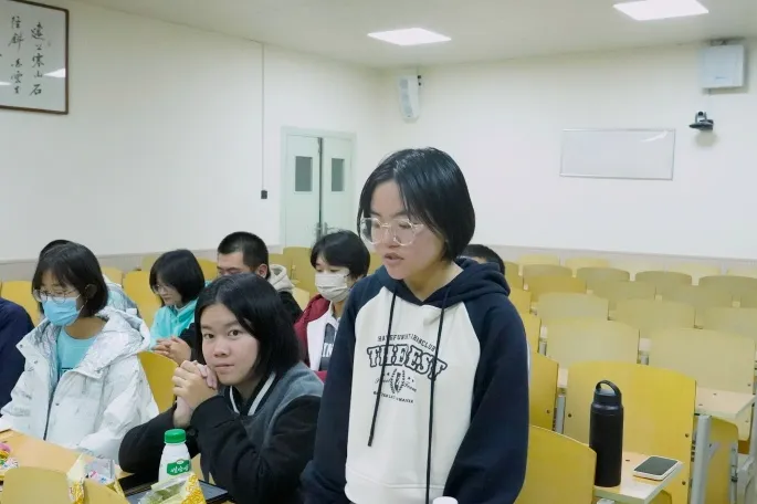 观影结束后,活动的问题讨论环节正式开始。本次活动围绕英美陪审团制度与我国人民陪审员制度有何异同,无罪推断是否存在弊端,合理怀疑有何存在价值三个问题展开讨论。同学们就此踊跃发言,并展开激烈讨论,现场氛围活泼热烈。