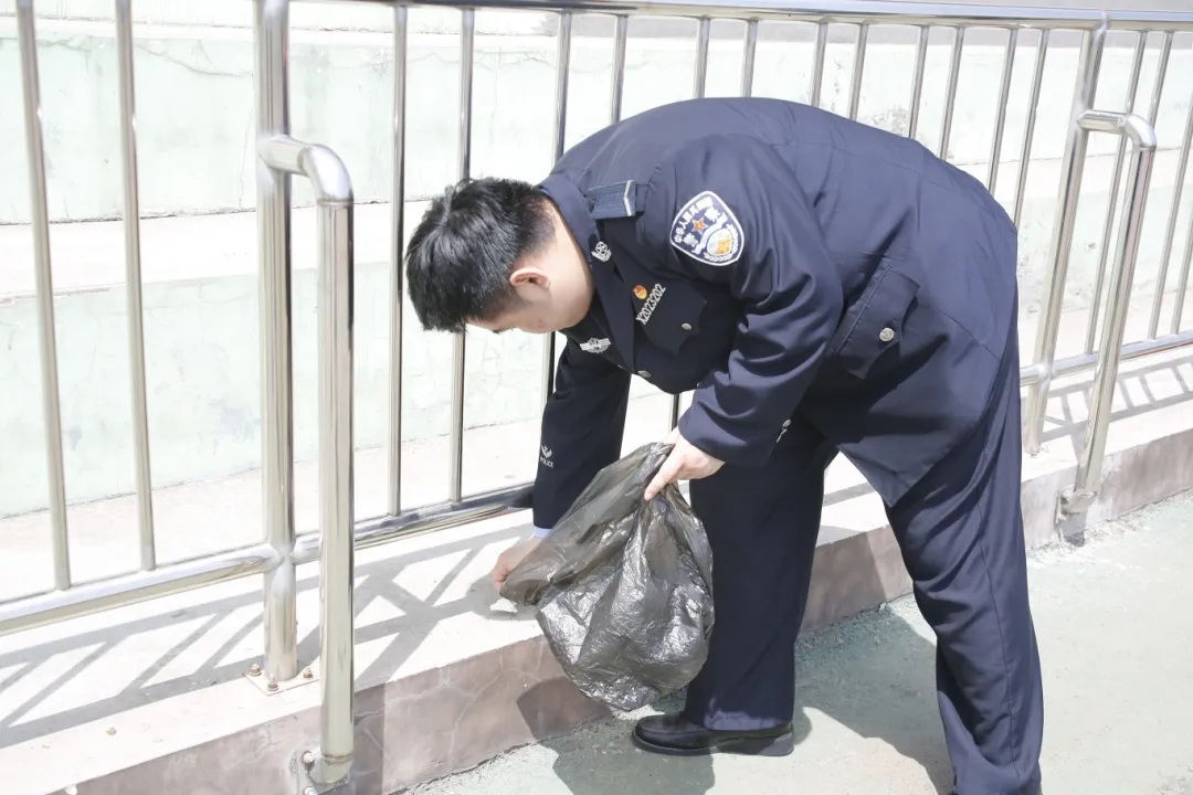 在运动会会场上,公安志愿者发扬“不怕脏、不怕累”的劳动精神,认真清理操场看台上的每一处角落,不落下任何死角,充分展示了“团结、友爱、奉献、进步”的志愿服务精神。