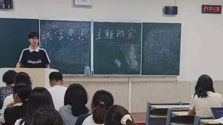 为增强学生的诚信意识,将资助育人与诚信教育融入班级建设全过程,帮助学生树立“知感恩,讲诚信”的观念,近期,88直播 “筑梦星光”资助政策宣讲大使联合各班有序组织开展“以诚待人,以信立人”主题班会。