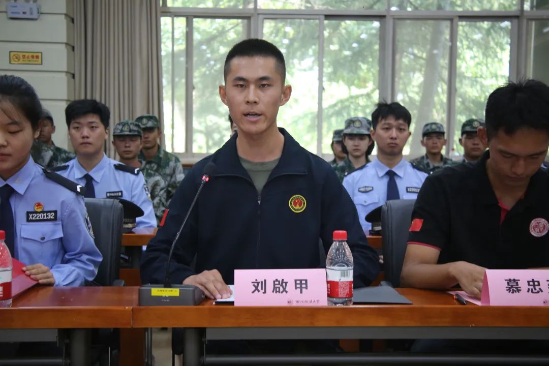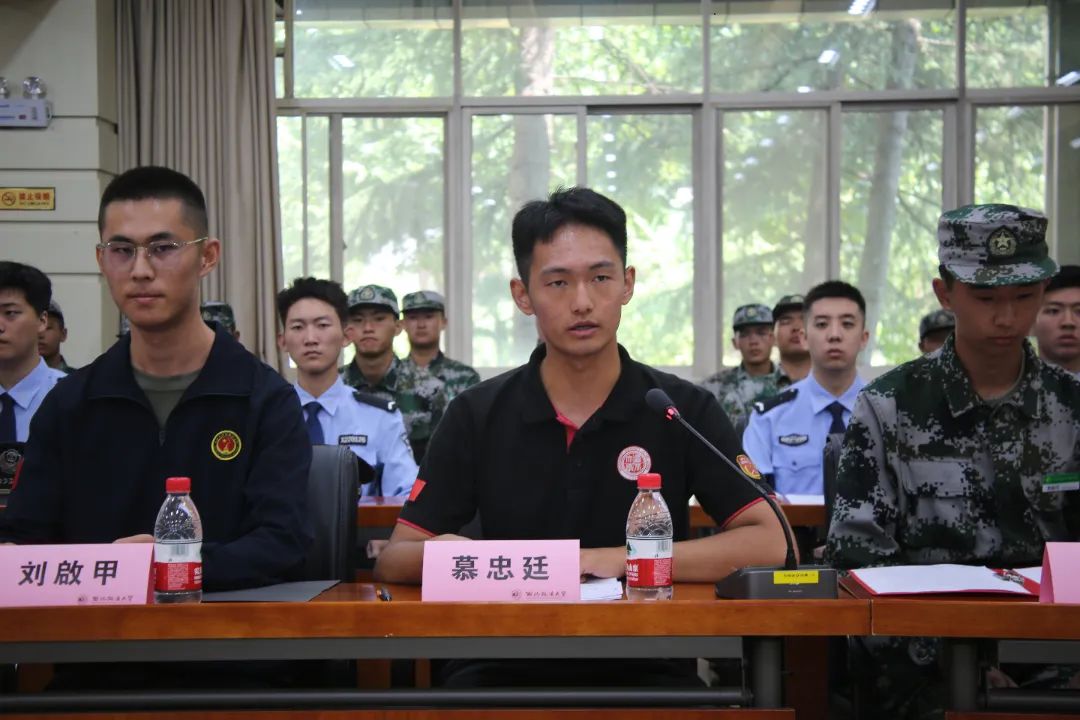 长安大学、西北大学、西北政法大学国旗护卫队代表依次发言,他们各自阐述了本校国护队的历史与传统,分享着个人与国护的故事,感慨于自己在国护的成长和进步,话语中充满了对这段经历的珍视和对未来的憧憬。西北政法大学国护预备役代表黄振珂同学在发言中坚定地表示,他们将接过红色接力棒,继续传承和弘扬国护的宝贵精神,努力讲好西法大国护“晨升暮降,风雨无阻”的青春奋斗故事,谱写无愧于自己、无愧于时代的青春之歌。