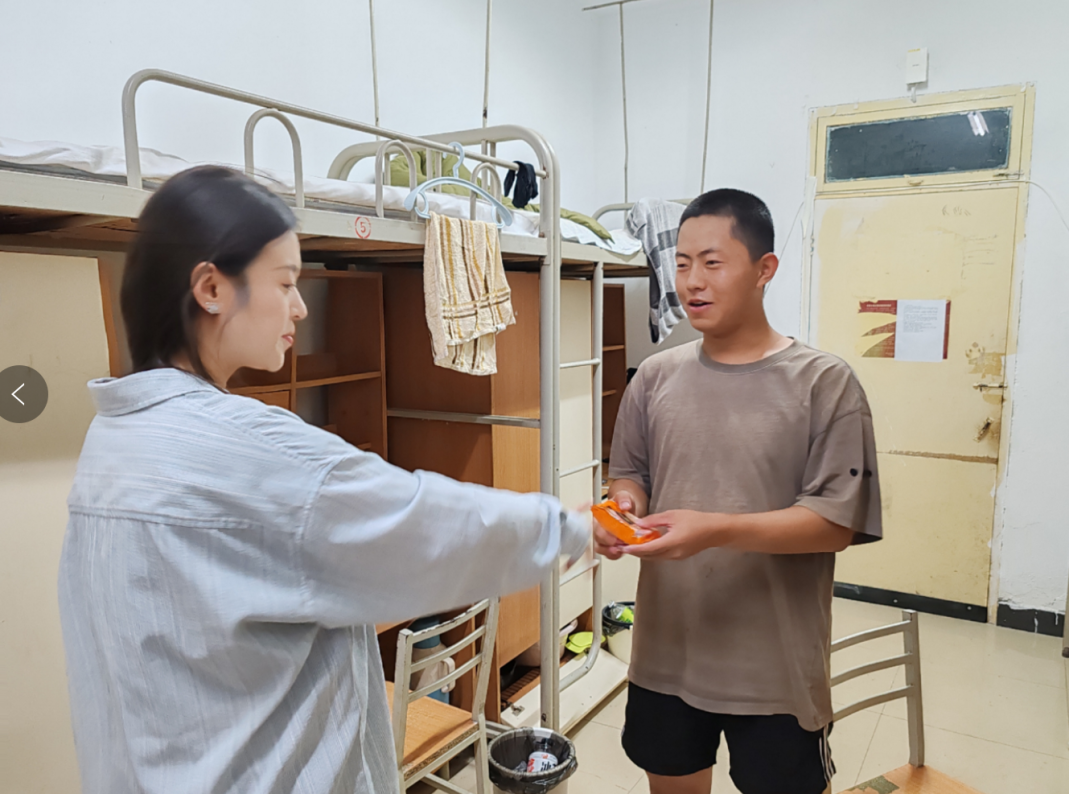 卫妍卓为留校同学们送去了月饼,表达了对学生们的节日祝福,并与他们展开亲切交谈。她细心询问了同学们入学以来的适应情况,耐心地解答学生们的困惑,为他们提供指导和帮助。她还叮嘱同学们要维护宿舍的清洁卫生,注重个人健康,经常与家人保持联系。最后,卫妍卓鼓励学生们要不负韶华,以更加积极的态度投身于大学的学习和生活,主动探索知识,不断充实自己。