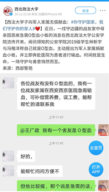 在与联系者商讨完献血事宜后,两位同学立即赶往西京医院。