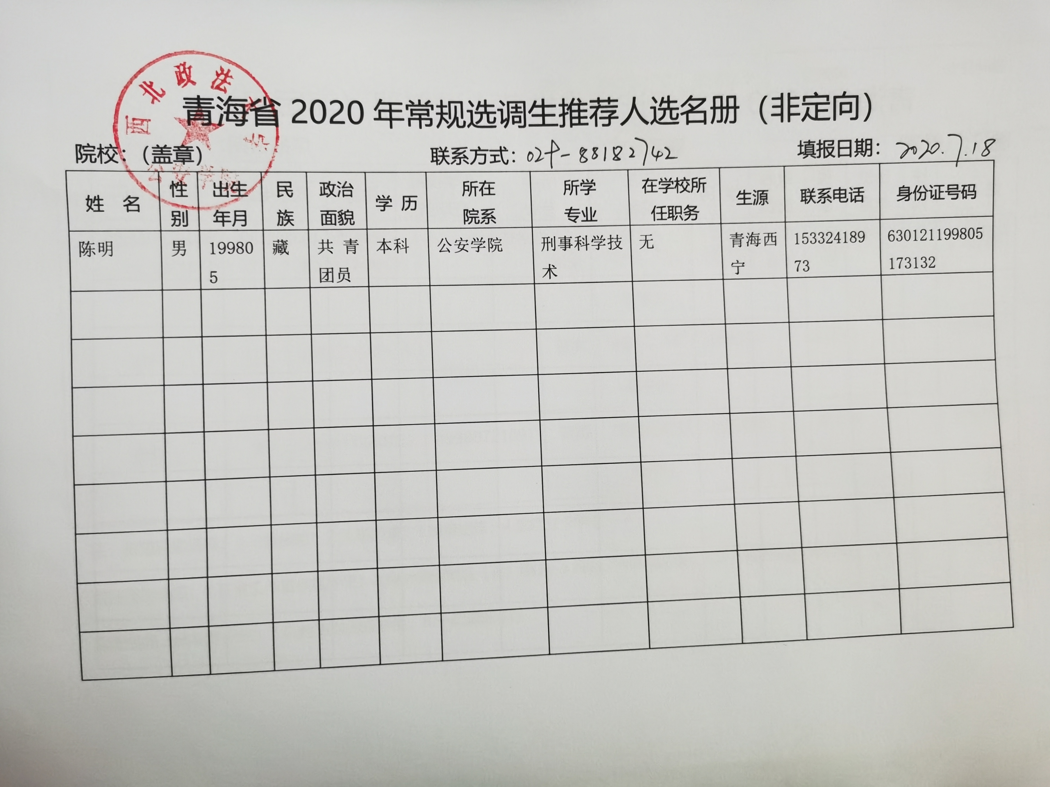 根据青海省委组织部《青海省2020年常规选调生选调公告》文件要求,经学生个人申请,院系推荐,学院及校就业中心审核,现将88直播 2020年常规选调生拟推荐人选予以公示。