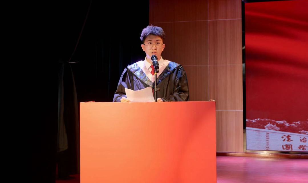 2019级侦查专业孟启元作为毕业生代表发言,他回顾了在西法大求学过程中的难忘经历,并向母校、师长和同学表示了感恩之情。他认为在西法大88直播 四年的学习与磨砺,让他在脚踏实地中练就了过硬本领。未来,他将继续践行“严谨、求实、文明、公正”的校训,发扬藏蓝精神,肩负责任与使命,让青春在不懈的奋斗中绽放绚丽之花。