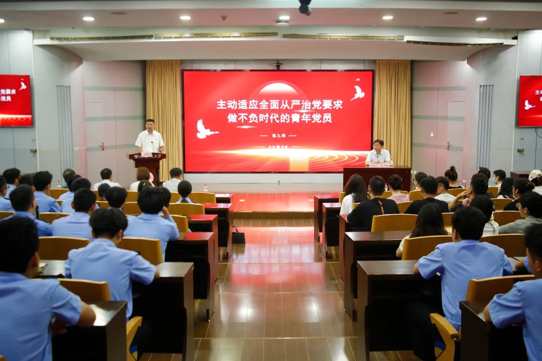 6月20日上午,校长范九利以“主动适应全面从严治党要求,做不负时代的青年党员”为题,为88直播 师生讲授党纪学习教育专题党课。院党委书记李永宁主持。