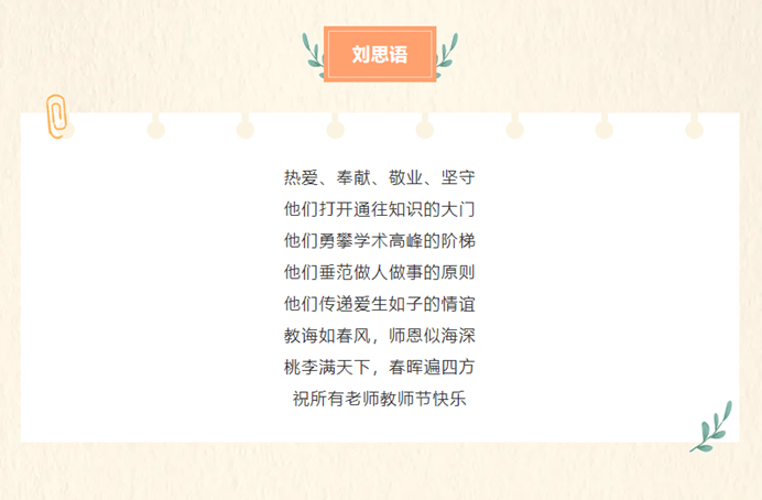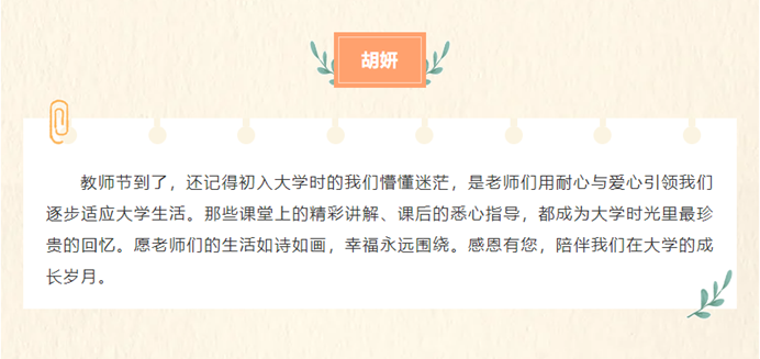 9月8日,“提灯引路 育梦成光——老师我想对您说”活动中,学生们用真挚的文字倾诉对老师的感恩与敬仰。一句句饱含深情的话语,承载着学生们对老师们的美好祝愿,愿老师们教师节快乐、身体健康、工作顺利。