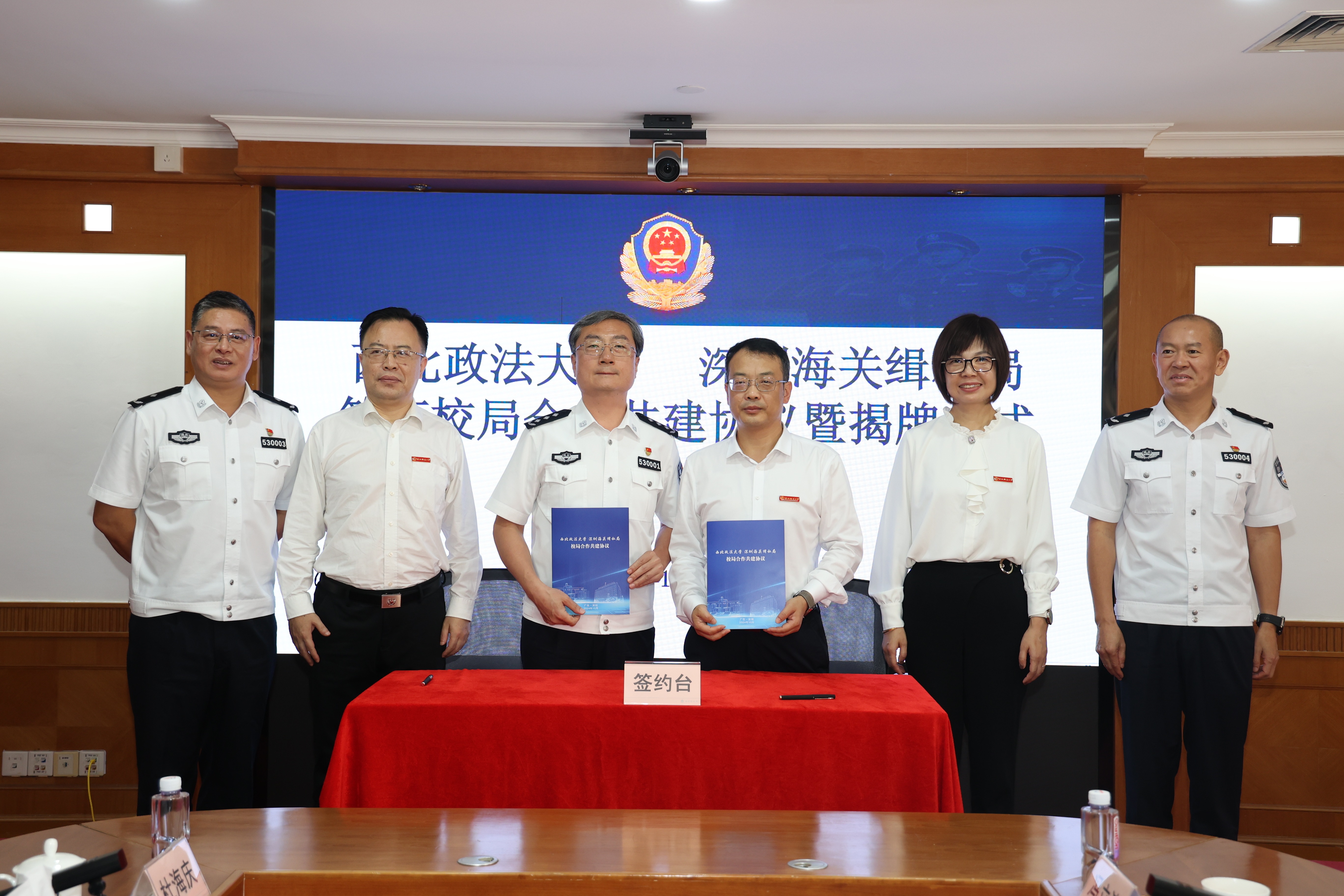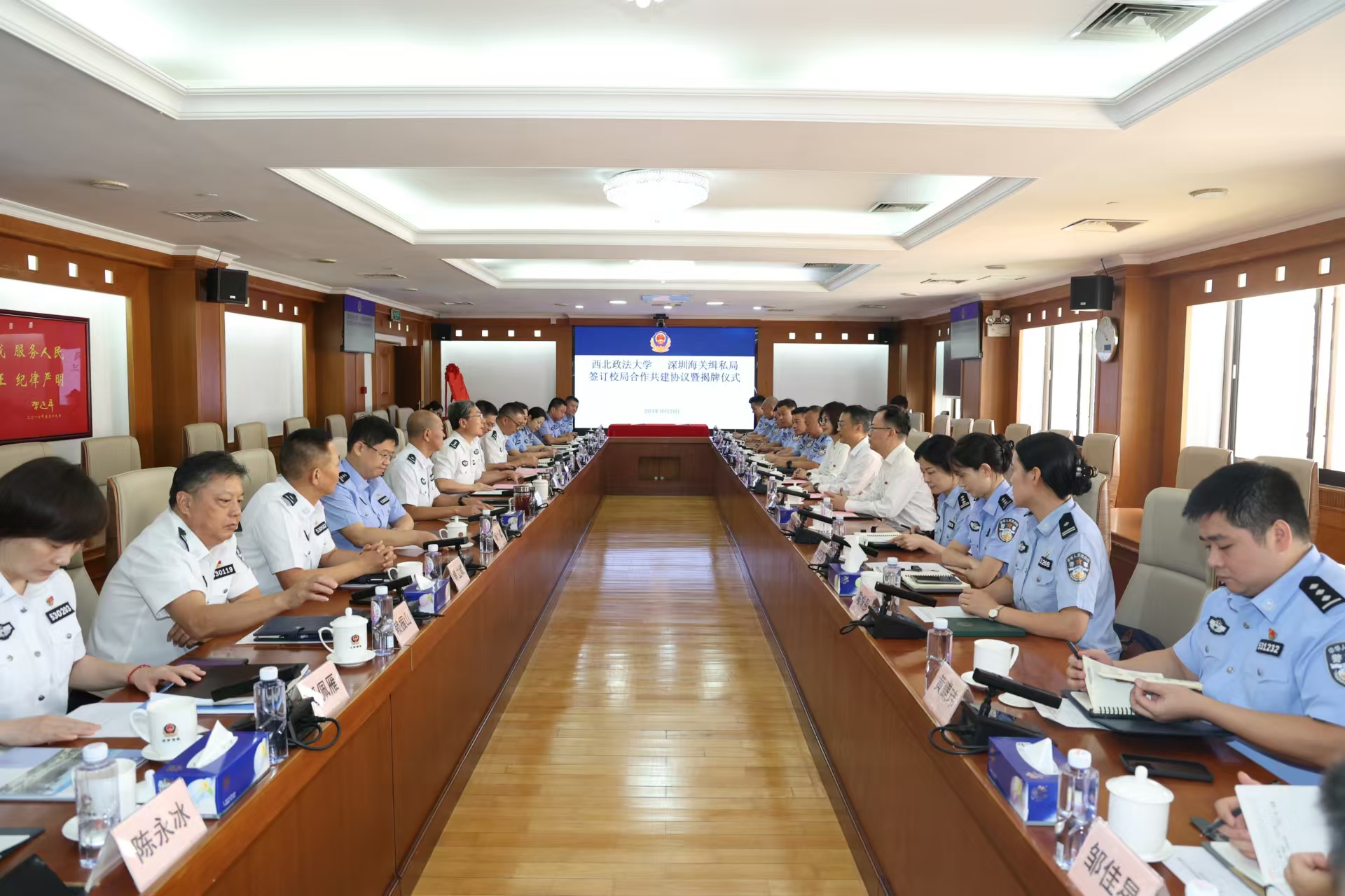 为深入学习贯彻党的二十届三中全会决定作出的“完善以实践为导向的法学院校教育培养机制”部署,加强高校与实务部门合作交流平台建设,2024年10月24日,我校与深圳海关缉私局共同举行校局合作共建协议签订暨揭牌仪式。副校长赵全宇与深圳海关缉私局局长张军强代表双方共同签署《西北政法大学 深圳海关缉私局校局合作共建协议》,并为“西北政法大学实践教育基地”揭牌。