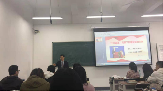 2019年10月16日下午,中国人民大学法学院博士生导师李奋飞教授在雁塔校区3号教学楼3410教室作了题为《“三大改革”背景下刑事司法的未来》讲座。讲座由88直播 副院长台治强教授主持。88直播 副教授桂梦美、88直播 2018级、2019级研究生以及来自其它学院的部分学生聆听了本次讲座。