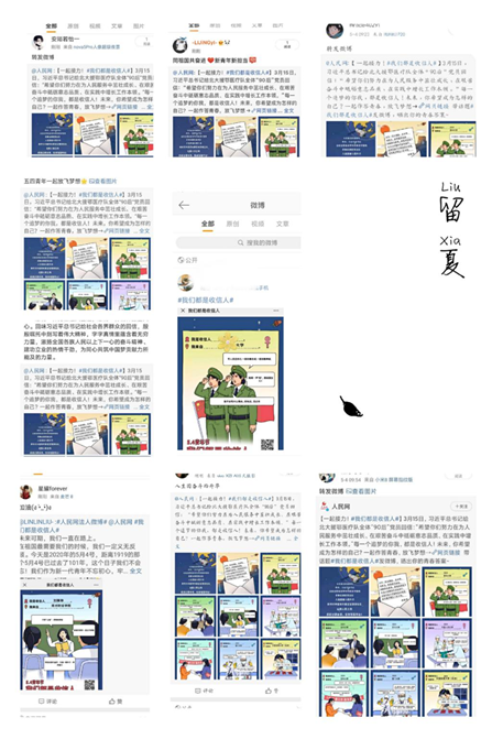 上午9点,教育部思政司在微信和微博平台同时发起“我们都是收信人”活动,88直播 各年级学生积极参与活动,并积极参与话题讨论和转发微博。