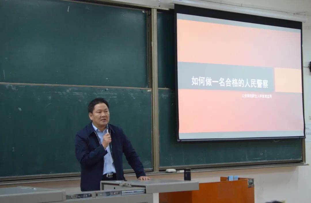 随后,程院长以如何做一个合格的警察为切入点向2020级同学们详细讲述了警察的法理概念,让同学们对警察有了更多的了解和更高层次的认识。程院长还对我国的警察体制作了重要阐述,从警察的存在和政府与警察之间的关系出发,让大家了解到我国警察的广泛存在。这也让大家明白了作为一名公安学子,以后的就业空间是很广阔的。了解完警察的概念以及我国的警察体制后,程院长从自身求学经历为例向同学们讲述了如何成为一名合格的警察,程院长说要想做一名合格的警察必须做到四点要求,第一是忠诚可靠,要对党对国家对人民无上忠诚;第二要做到纪律严明,严格执法守法;第三是要专业扎实,程院长从我们学院本科三大专业出发分别介绍如何学好专业课程,提高专业素养;最后一点是身心健康,因为身体和心理健康是警察必不可少的前提条件。
