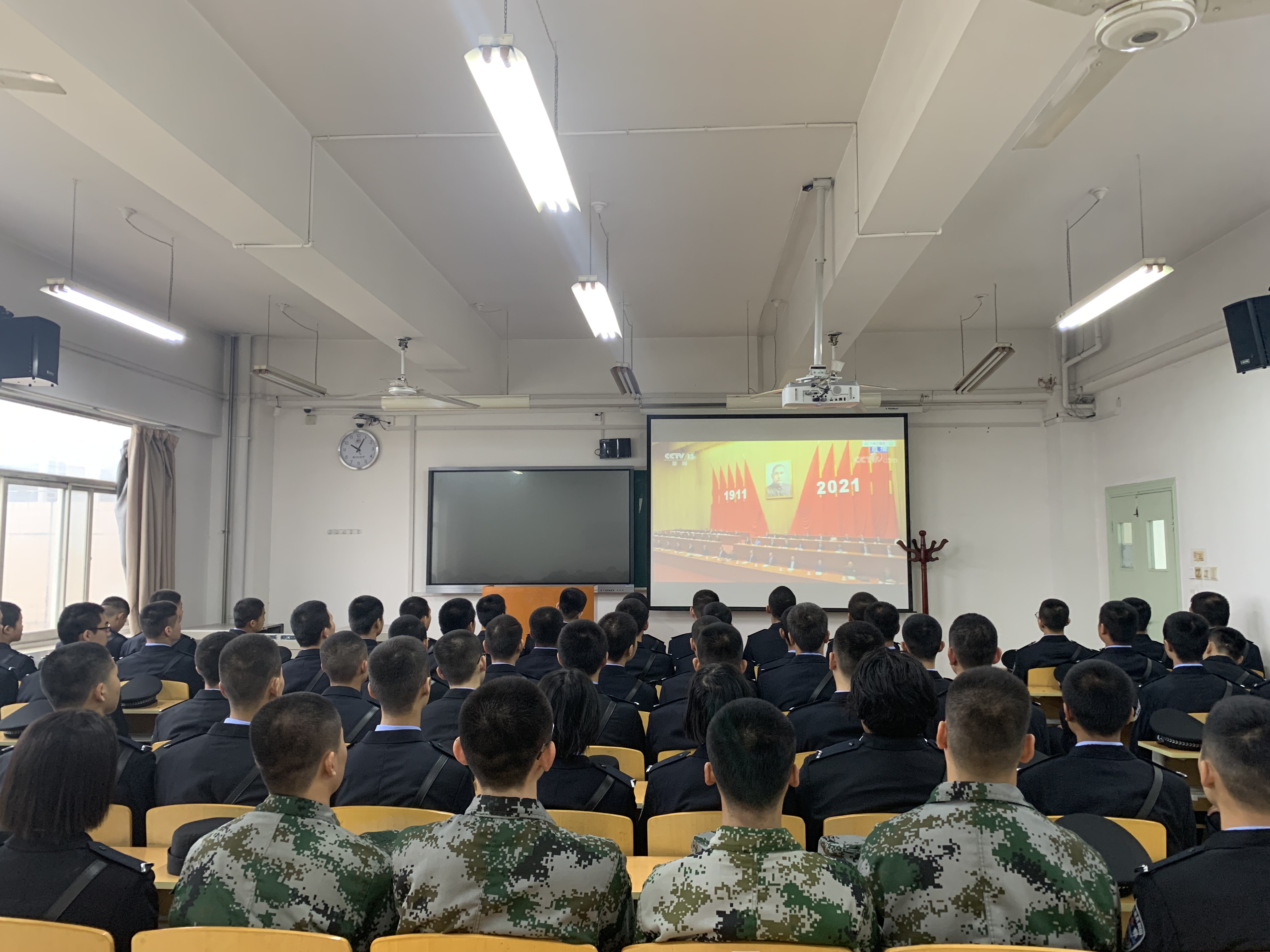 组织2021级新生于天平楼b411教室集体收看直播。