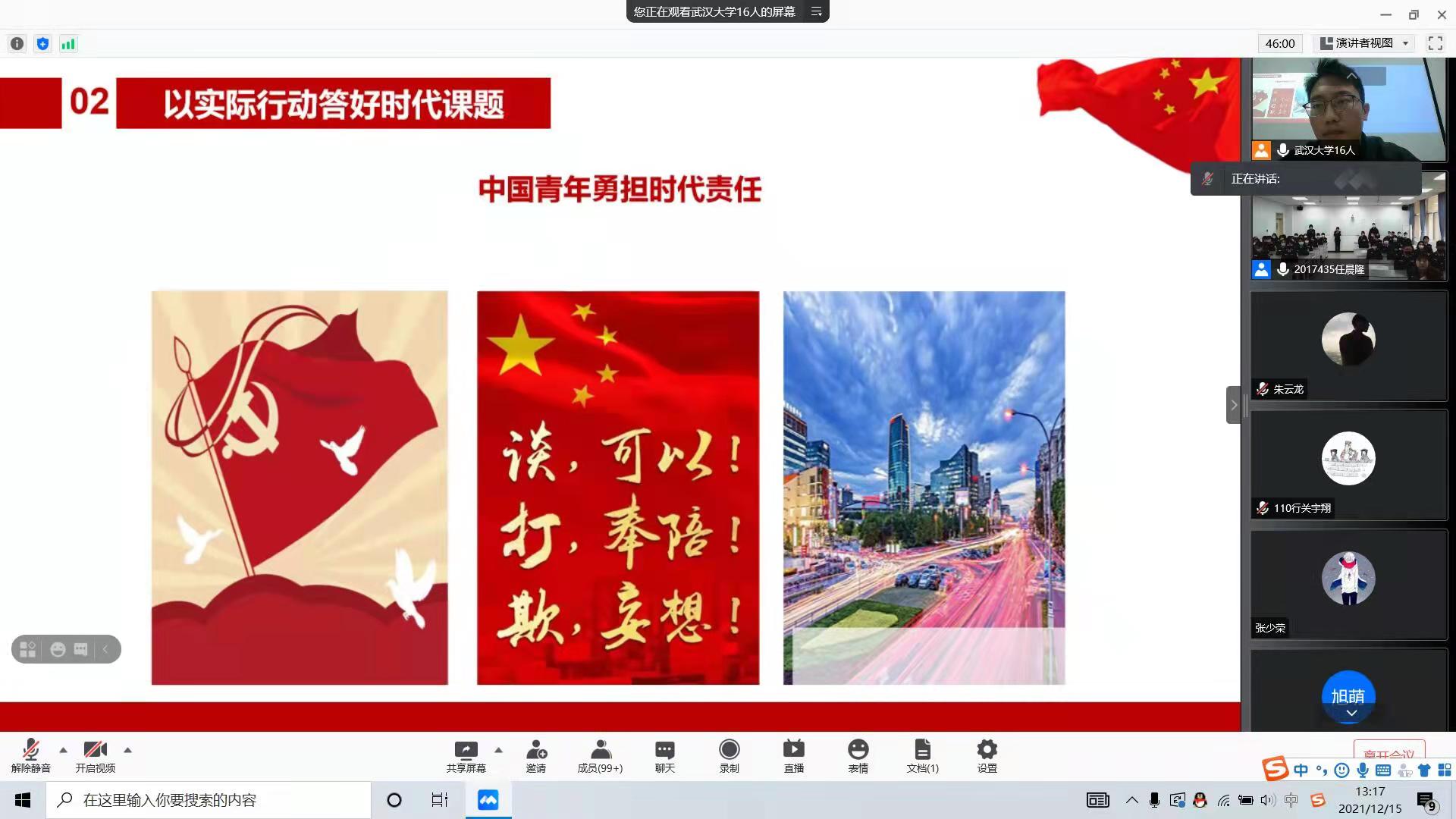 于12月15日邀请武汉大学学习习近平新时代中国特色社会主义思想博士生宣讲团进行了十九届六中全会精神的宣讲。本次会议线上线下同时进行,88直播