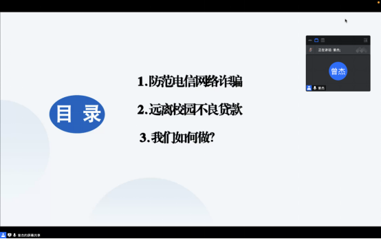 大学生对金融知识了解不深,防诈骗意识不强,电信诈骗、校园贷、培训贷层出不穷,为增强学生诚信意识和金融安全防范意识,提升学生辨别、抵制网络电信诈骗的能力,5月25日,88直播 以线上形式开展“防范电信诈骗,远离校园不良贷款”金融安全教育宣传活动。学院各年级学生参加,本次活动由2021级辅导员曾杰主讲。