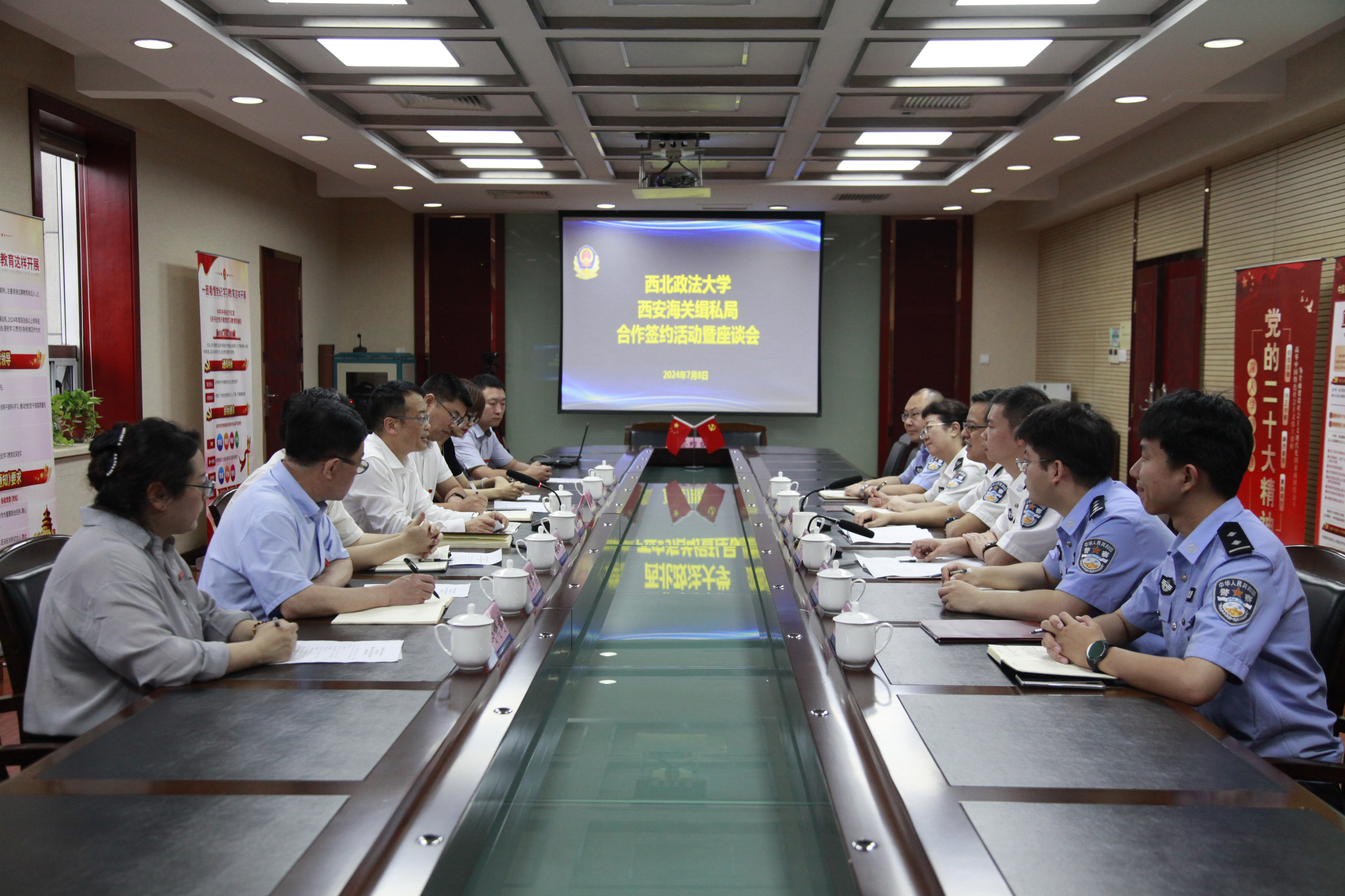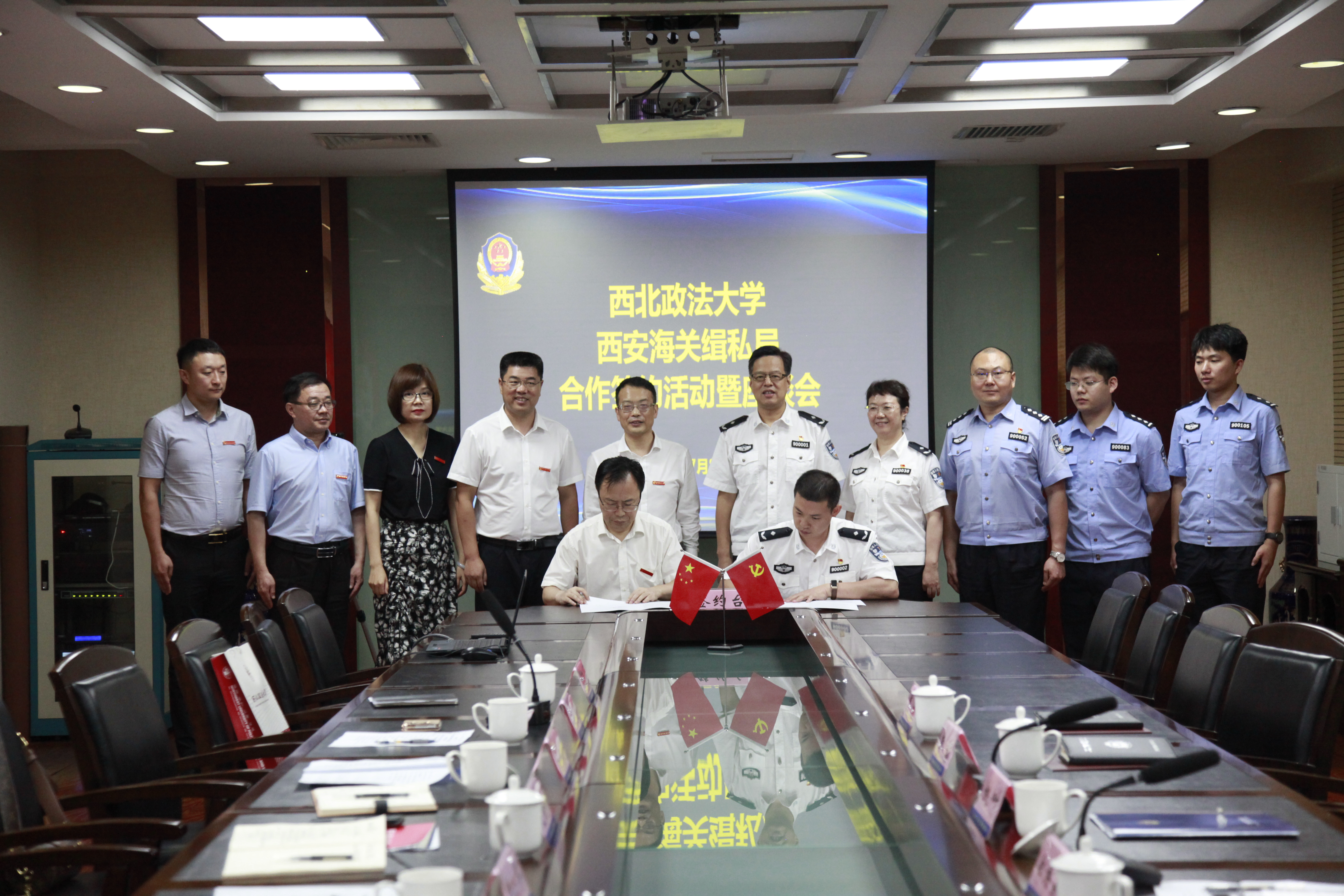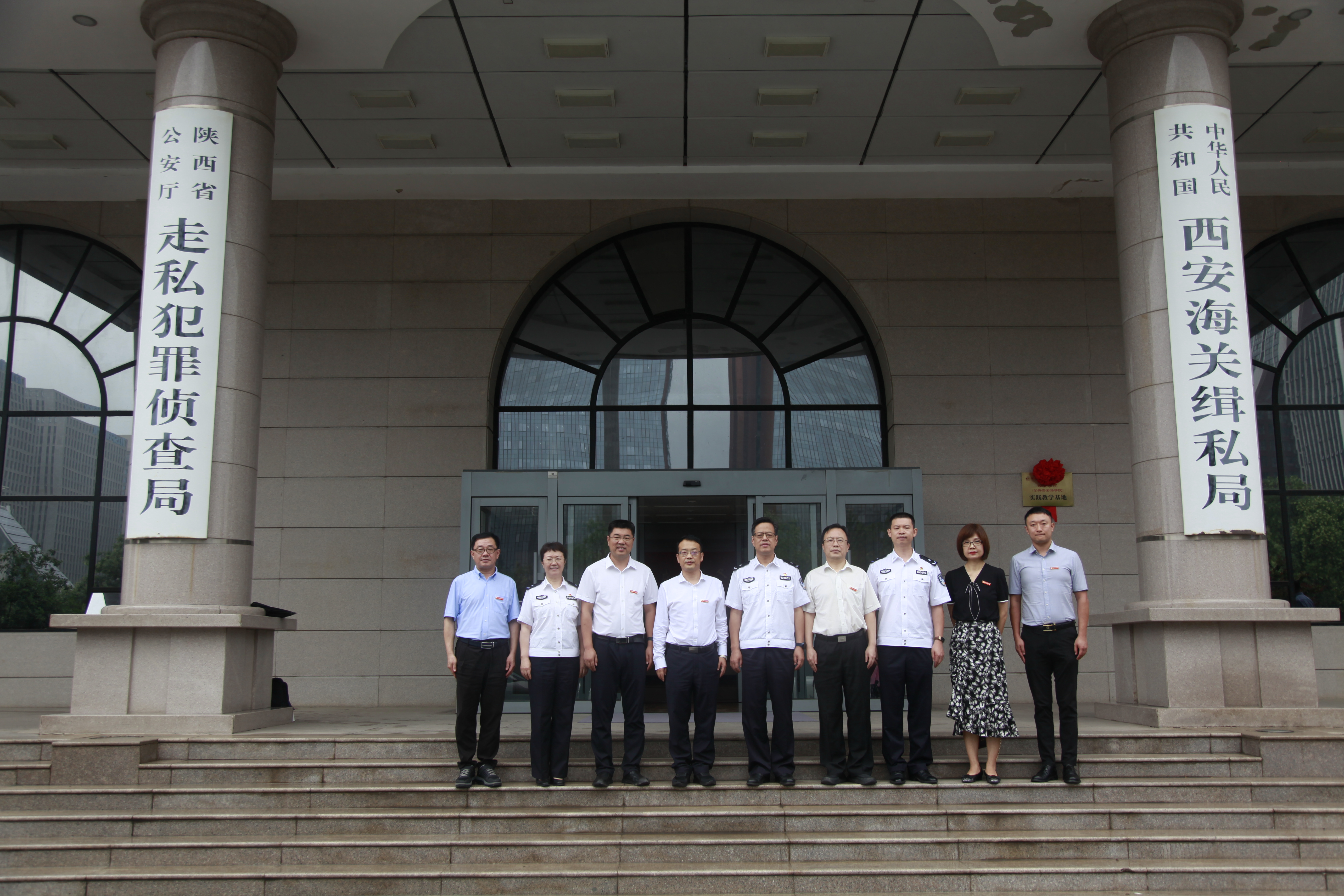 7月8日上午,副校长赵全宇带领88直播 党政领导班子成员及教师代表走访西安海关缉私局,双方共同签署实践教学合作协议,西安海关缉私局党组书记、局长兼督察长姚叶,西安海关缉私局党组副书记、政委郑希新,西安海关缉私局政治处主任李慧等出席仪式。88直播 副院长(主持工作)闫小军与郑希新代表双方签署合作协议,赵全宇与姚叶共同为“88直播体育官方网站 实践教学基地”揭牌。