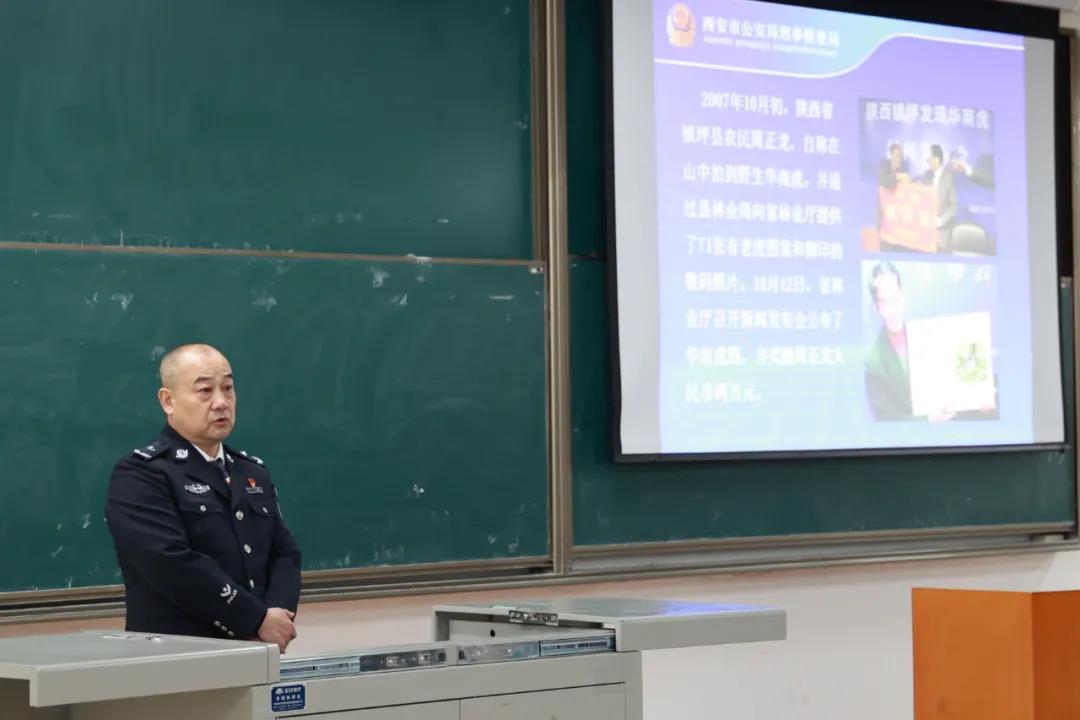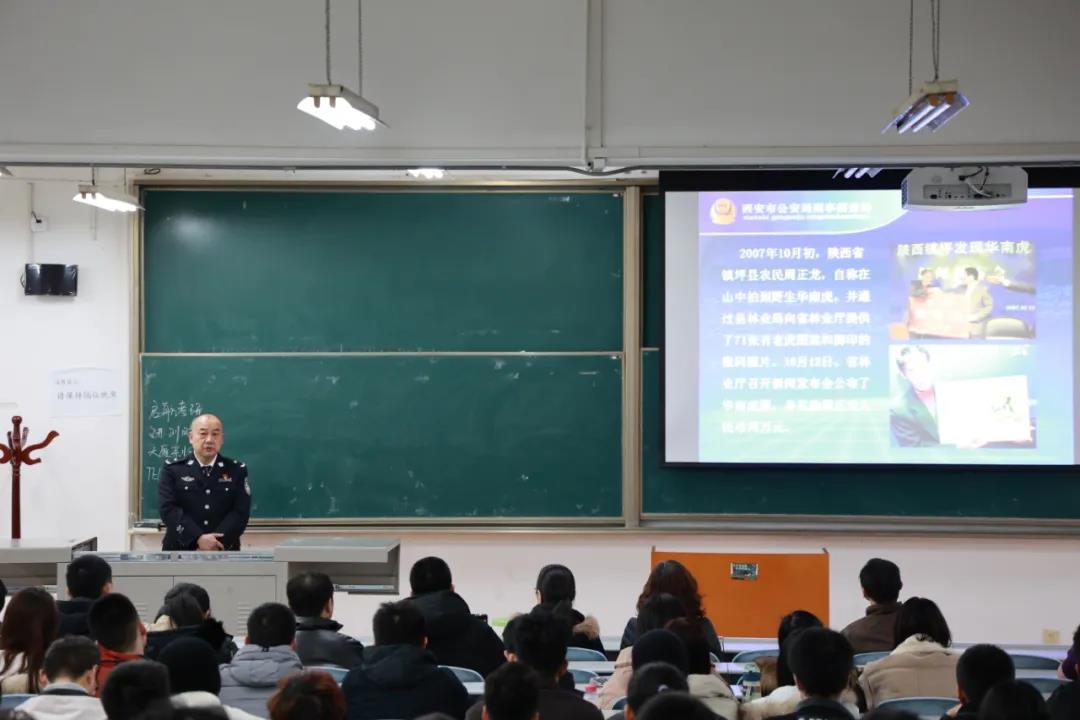 2020年12月3日晚,实务大讲堂系列活动之论案件现场重建—以“华南虎”等典型案件专题讲座,在西北政法大学长安校区天平楼AJ22教室举行。此次讲座特邀西安市公安局刑侦局技术处警务技术二级主任、影像技术正高级工程师、三级警监赵仲学警官担任主讲,88直播 副院长台治强教授主持本次讲座,88直播 部分老师和全校同学们积极参加。讲座伊始,台治强教授对赵仲学主任的到来表示衷心的感谢和欢迎,并详细介绍了赵仲学主任的工作经历:公安部首届刑事技术课程专家,全国标准化委员会刑事照相、录像委员会委员,中国刑警学院、中国人民公安大学及西北政法大学客座教授,陕西省公安厅特聘刑侦专家等。赵仲学主任从警30多年来共出犯罪现场2000多起,参与侦破多起全省全国有名的影响重大的特大案件且发挥重要作用,发表相关刑事侦测论文二十余篇,因破获周正龙“华南虎”案受到陕西省公安厅的表扬,荣获个人二等功。赵仲学主任丰富的理论知识和实务经验为讲座现场的老师和同学们所称赞。