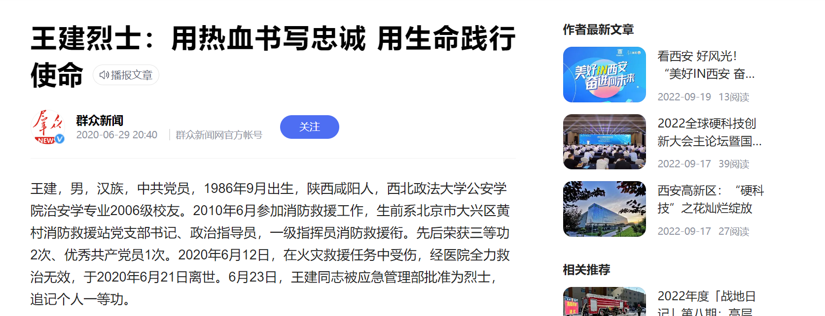 “王建校友把人生最美好的年华和最宝贵的生命全部奉献给了消防事业,他是抢险救援前线的优秀代表,更是西北政法大学的骄傲!”“王建校友淬火成钢,为使命而生,为人民而战,是消防员及所有‘逆行者’的骄傲。”“年仅34岁的你,用宝贵的生命践行着铮铮誓言、用赤胆忠诚铸就了永恒丰碑。”……无数校友纷纷在西北政法大学校友会公众号下方留言,向英雄表达最深的敬意。